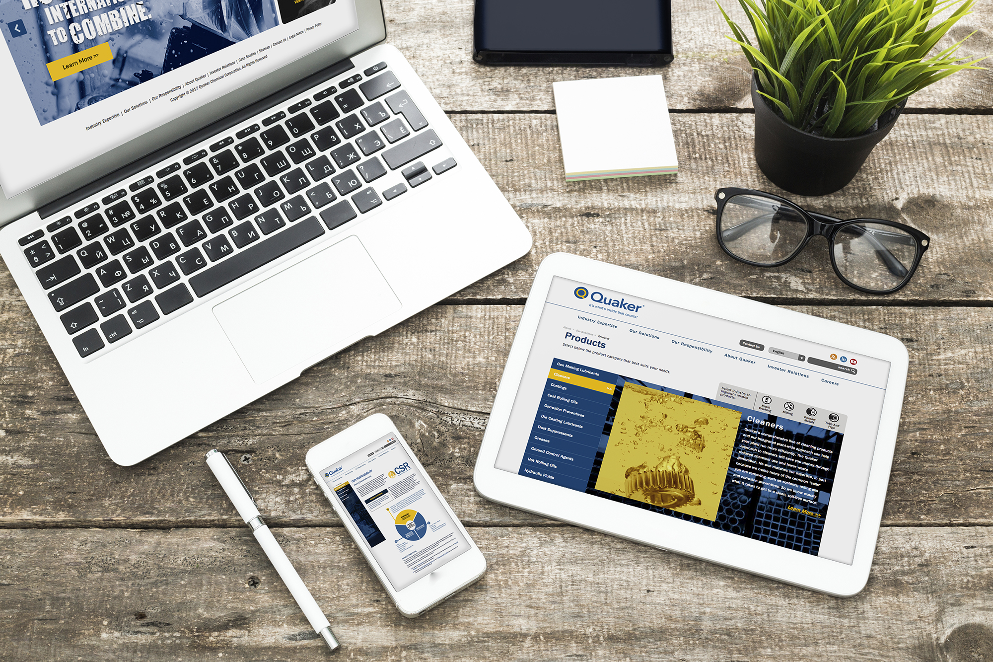 Quaker Chemical, a market leader in the manufacture of chemical products and applications for the steel and metalworking industries, does business with some of the most dominant global companies in the world. A corporate restructuring made it necessary to develop detailed messaging around customer intimacy, financial stability, and technological superiority, as market leading assets.