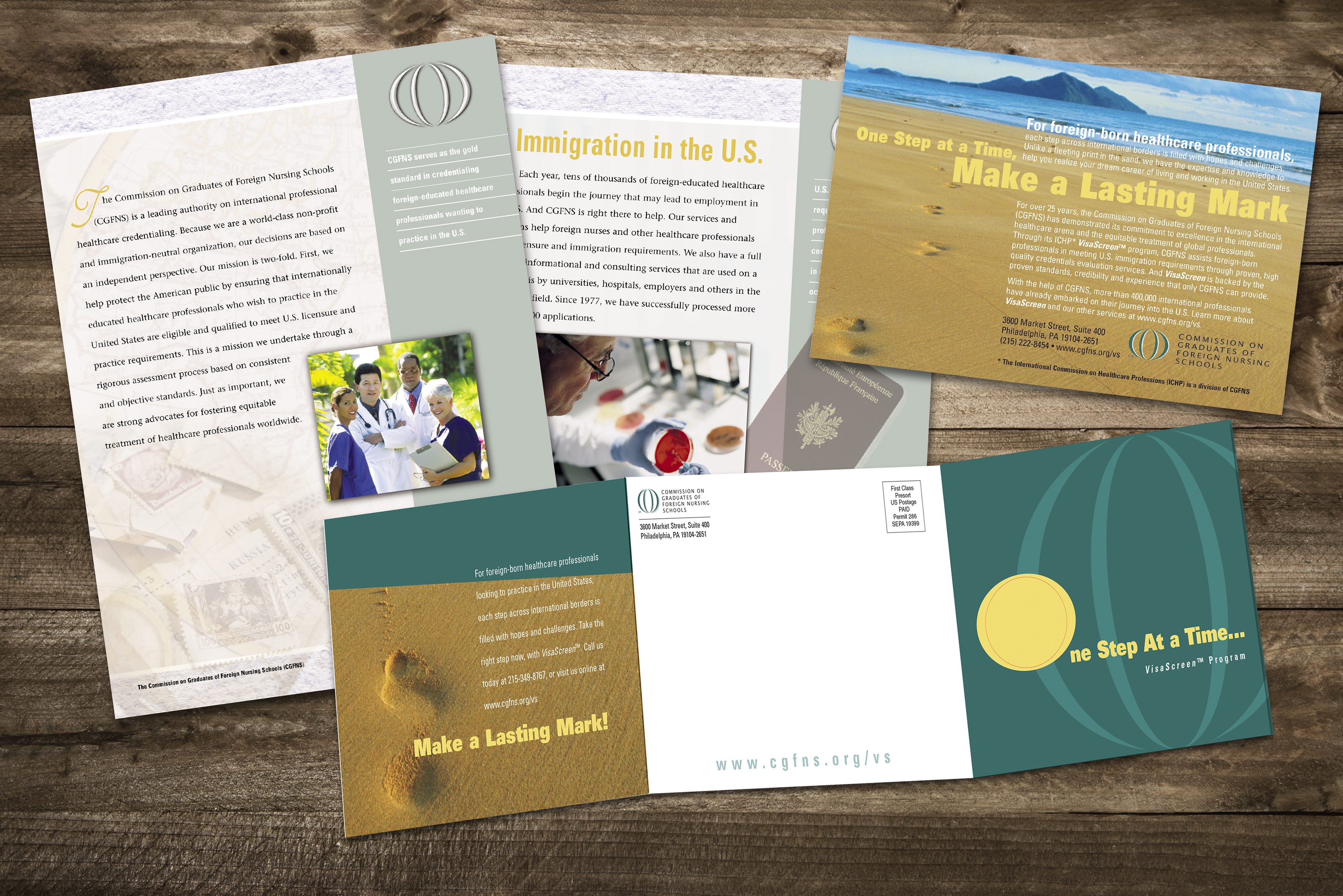 With the global nursing shortage an urgent challenge, CGFNS, a federally approved screening programs for foreign-born healthcare workers, anticipated a rush of activity. To maintain its market dominance, CGFNS wanted to re-energize marketing and public relations efforts to deflect expected competition from state nursing boards and other newcomers entering the credentialing field. The theme, Narrow the Healthcare Workers Gap, One Footstep at a Time, was inspired by a global think tank hosted by CGFNS. The campaign was designed to align with emotional issues and legal challenges that affect foreign nurses seeking employment in the U.S.